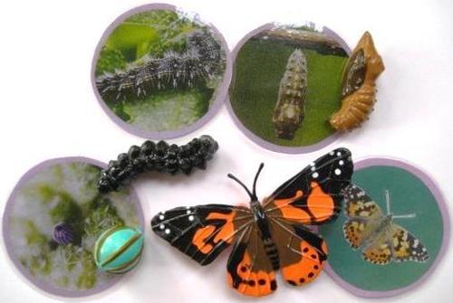 4-piece PAINTED LADY BUTTERFLY LIFE CYCLE, & matching cards in presentation/storage box