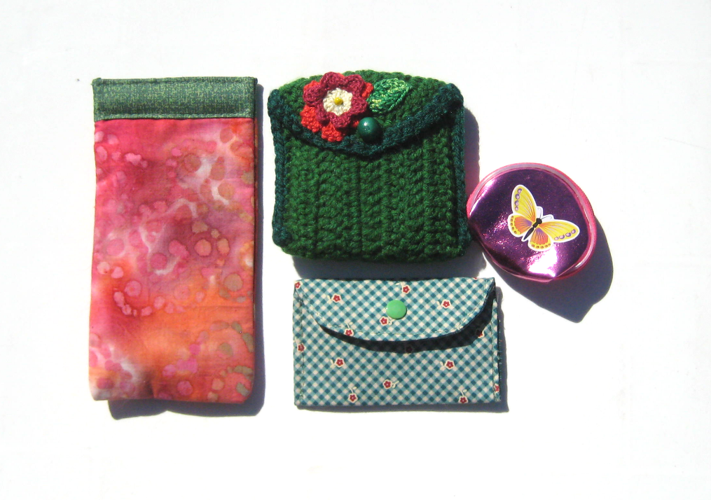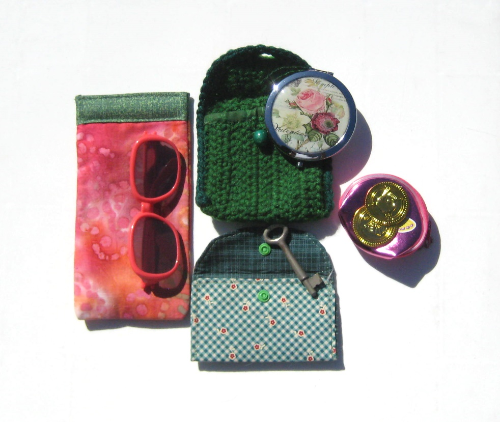 This activity provides four separate containers as an opportunity for a child to learn and practice different methods of opening and closing and to experiment with problem solving.  There is a zipper, a plastic popper (snap), a button, and a measuring tape ‘snap’*   — each of which hold a treasure for the child to discover.  None are toys but are instead real, everyday objects one might find in a handbag or drawer.  The four containers in this activity hold:  2 coins, sunglasses, a compact/mirror, and a key.  There is only ONE of this particular activity to purchase.