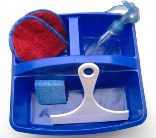 WINDOW WASHING ACTIVITY includes: carrying caddy (approx 23cm sq x 9cm deep or 9sq x 3.5 deep); 3 terry mitts; sponge; window wiper and child-sized spray bottle (15cm h x 4cm diameter at widest point or 9h x 1.5 diameter).
